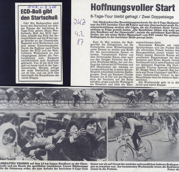 Bereits im folgenden Jahr sorgten die Radsportler für Furore. Erstmals richteten sie die bis dahin vom RC Menden veranstaltete Iserlohner Sechs-Tage-Tour aus. Durch diese an 3 Wochenenden auf dem 1,8 km langen Rundkurs der Giesestraße ausgetragenen Frühjahrsrennen wurde der PSV Iserlohn weit über die Stadtgrenzen in der Radsportwelt bekannt. 21 Jahre lang sollte diese Sportveranstaltung -zuletzt als 4-Tage-Tour ausgerichtet- Beweis für den Leistungsstand der Radsportler zu Beginn der jährlichen Rennsaison sein. Erst Ende der 90er Jahre musste diese Veranstaltung aufgrund baulicher Veränderungen an der Giesestraße (Erschließung durch Firmen und Märkte) mit Bedauern eingestellt werden, da ein geregelter Ablauf der Rennen nicht mehr gewährleistet werden konnte.