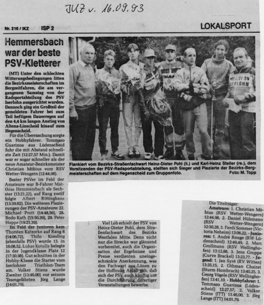 Die Radsportabteilung richtete aber nicht nur die "Sechs-Tage-Tour" aus, sondern auch Bergzeitfahren von Altena zum Hegenscheid, Querfeldeinrennen rund um den Bismarckturm, die Stadtmeisterschaften für Iserlohn und wiederholt am Fronleichnamstag die Straßenmeisterschaft für den Bezirk Westfalen-Mitte. Während die Rennfahrer des PSV im ganzen Land gute Platzierungen herausfuhren und ebensolche Erfolge errangen, starteten in Iserlohn Fahrer wie Dieter Kemper, Thorsten Rellensmann und Rolf Aldag, die später zu bekannten Profi-Sportlern heranwuchsen.